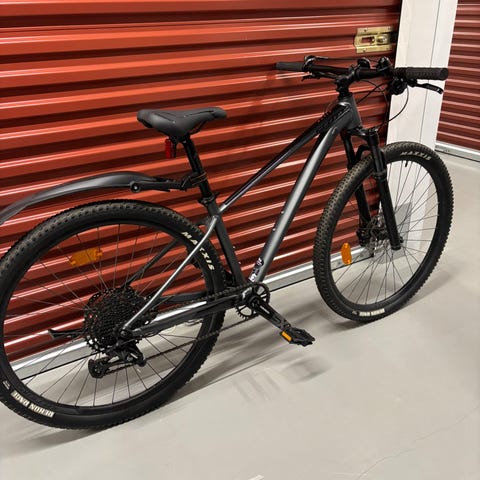 Med støtteben, skærmset, lygter, lås og kvittering.