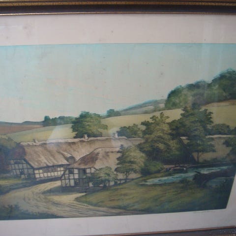 Radering, Sigvard H, motiv: Landskab, b: 35 h: 32, Radering i sort motiv fra 1850 - 1920 ca.