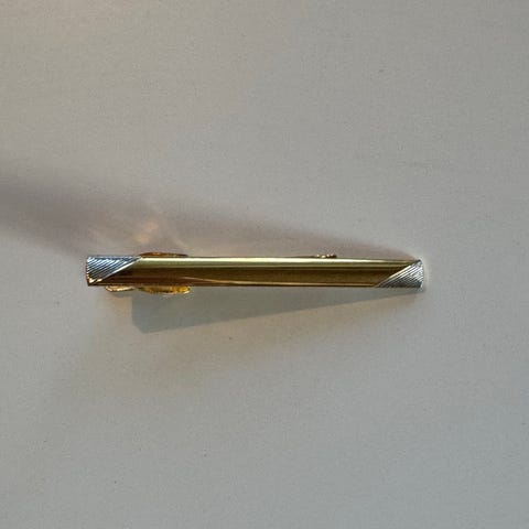 Elegant slipsenål. Sølvfarvet og med guldfinish i enden. Fremstår som ny.