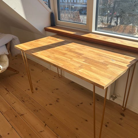 Flot skrivebord i egetræ. Ubehandlet.