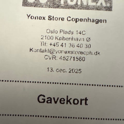 Gavekort til RSL, badminton udstyr, værdi 2.000 kr