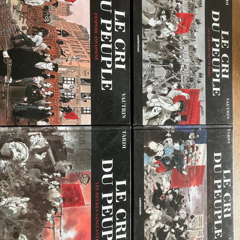 Samling af tegneserier af Tardi på fransk. Pakken indeholder fire hardcover-album med sort-hvide og farvede illustrationer. Velegnet til læsere, der er interesserede i franske tegneserier og grafiske romaner på originalsproget.