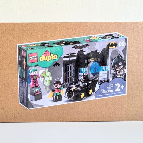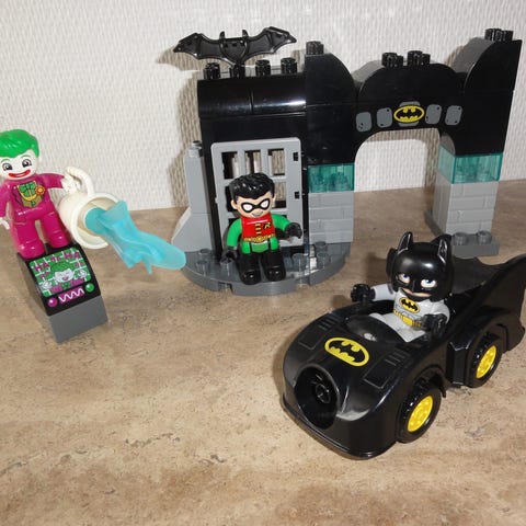 LEGO DUPLO DC Bathulen i komplet stand med tre figurer: Batman, Robin og Jokeren.