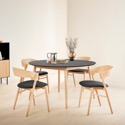 Lewis - Lamel Rundt Spisebord I Egefiner Med Udtræk 120/160/200 CM - 2x Tillægsplader Medfølger