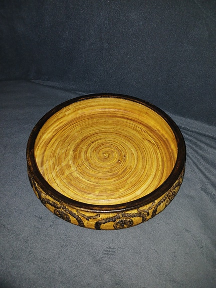 Græsk reproduktion Aryballos vase i ler. Keramik i brune farver og med påmalet mønster. Denne type vase blev brugt til parfume eller olier. Diameter 7 cm og højde 9 cm.