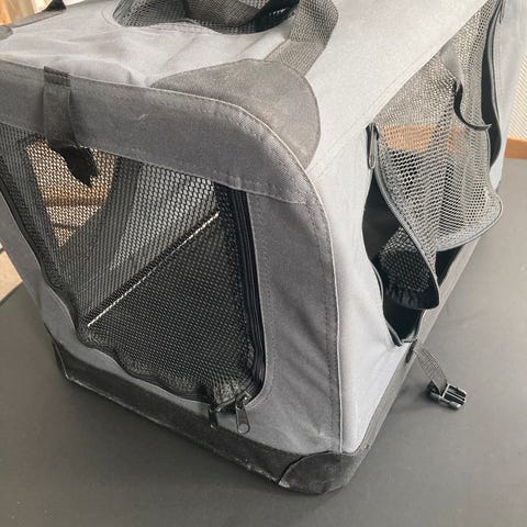 Praktisk hundebur, som kan åbnes på tre sider. Nemt at folde sammen.