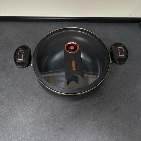 WMF Perfect Pro trykkoger i rustfrit stål med sort håndtag og låg med integreret betjeningsenhed. Gryden har indvendig markering og er egnet til tilberedning af fx gryderetter, supper og andre retter under tryk. Trykkogeren har sikkerhedslukning i håndtaget og ventil i låget. Velegnet til daglig madlavning, hvor der ønskes tilberedning under tryk i en stålgryde med låg og håndtag i plast.