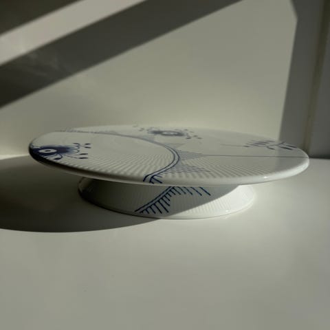 Royal Copenhagen Lace Anniversary kagefad på fod i hvidt porcelæn med blå dekoration. Rund form med klassisk blondemønster på både fad og fod. Velegnet til servering af kager, tærter eller andre anretninger. Leveres i original æske med Lace Anniversary 130 years mærkning på låget.