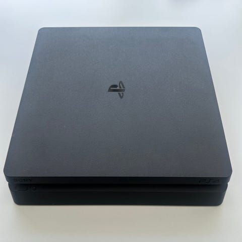 Sony Playstation 4 konsol i sort med tilhørende DualShock 4 controller. Medfølgende strømkabel og HDMI-kabel.