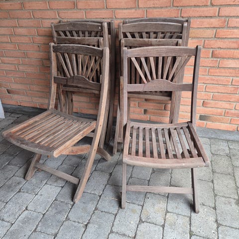 Have spisebordsstole i teaktræ med armlæn.