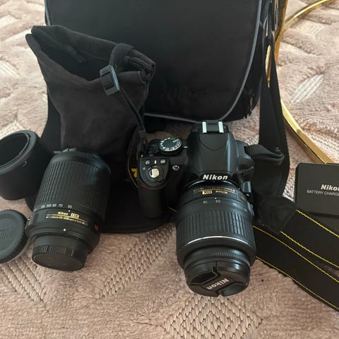 Nikon D3000, spejlrefleks, JA x optisk zoom, Rimelig, Det har svært ved at stille skarpt når man zoomer og glasset for enden af linsen sidder løst, jeg ved ikke noget om kameraer derfor sælges dette billigt inkl.taske og et godt batteri