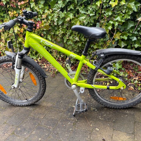 Under 1 år gammel PUCH Moonlight børnecykel 20" . Brugt knap 2 måneder inden han voksede fra det. Cyklen har blå stel og grøn forgaffel samt sort saddel og styr. Udstyret med kædeskærm, støtteben, reflekser og platformpedaler. Velegnet som hverdagscykel til børn, der passer til 20" hjulstørrelse.