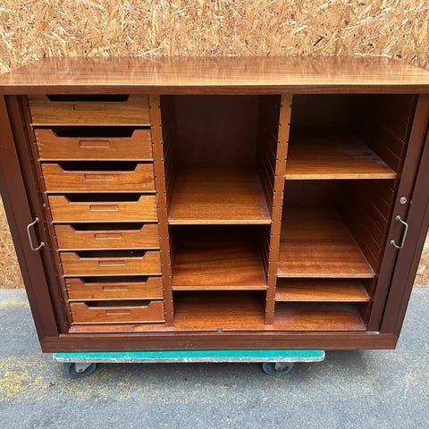 Arkivmøbel i delvis massiv mahogni,med 5 sinkesamlet udtræksbakker.