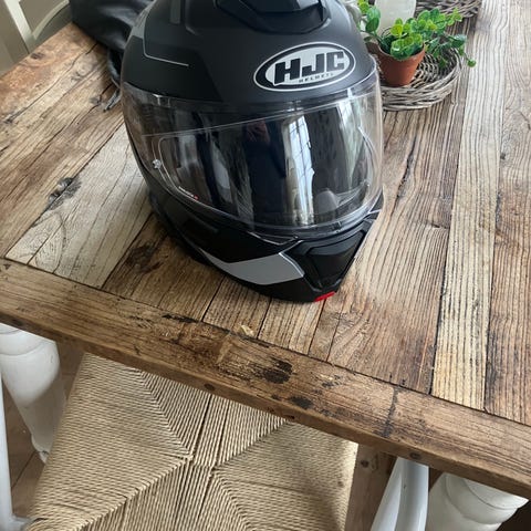 HJC IS-Max II motorcykelhjelm i størrelse XS med omkreds 54 cm. Hjelmen er udført i en mat sort farve med gule detaljer. Den er godkendt efter ECE R 22-05 standarden, som angivet bag på hjelmen. Vægten er oplyst til 1750 g. Visiret er klart og dækker hele ansigtet. Hjelmen er egnet til motorcykelkørsel og lignende brug, hvor der kræves godkendt hovedbeskyttelse.