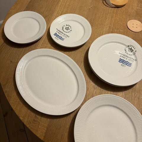 Sælger alle disse Royal Copenhagen Hvid Riflet – diverse dele samlet. Alt er 1. Sortering.