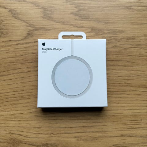 Apple 25w MagSafe oplader og USB‑C strømadapter i hvid. Sættet består af en trådløs MagSafe oplader til kompatible iPhone‑modeller samt en USB‑C strømadapter, der tilsluttes med USB‑C kabel (ikke vist). Opladeren bruges til trådløs opladning ved at placere telefonen på den magnetiske ladeplade, mens strømadapteren tilsluttes en stikkontakt. Farve: hvid.