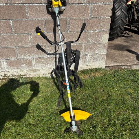 Incl. bæresele, 3-tandsklinge, trimmerhoved med snøre,rundsavsklinge,olie m.m