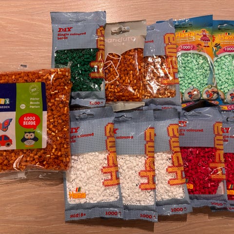 Råhvid, turkis, lys blå, lys grøn, lyserød og lys lilla.
