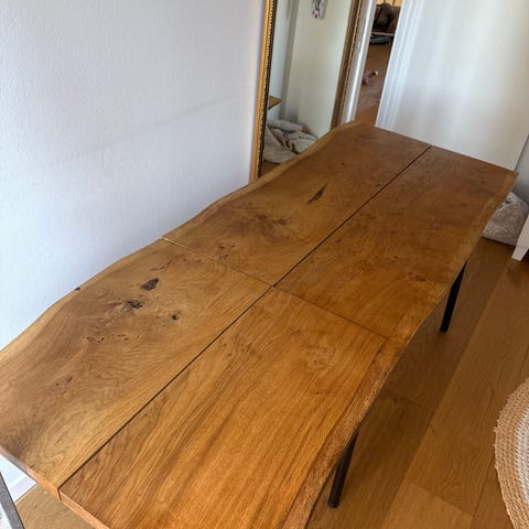 Spisebord sælges - keramisk bordplade dvs den kan holde til alt, den kan ikke ridses, den kan tåle varme, alt kan komme af den. Bordet er 320 langt og 110 bredt, det er købt i 2022 for 24900,- (kvittering haves) og sælges for 10.000 - bordet har netop fået en ny bordplade så det står helt som nyt(der var en fejl på den gamle plade derfor det har fået nyt) . Så mangler du bordet der kan rumme alle gæster og holde til alt - så får du det her til en skarp pris. Står opbevaret i Ikast pt så kan enten hentes der eller komme til Sjælland og hentes der.