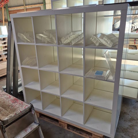 Velholdt rumdeler med 2 skuffe elementer (4 skuffer) sælges