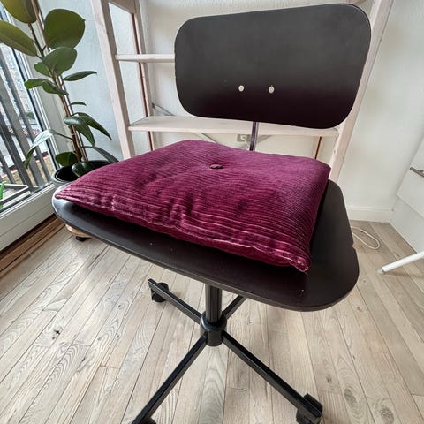 Retro kontorstol med lille skrivebord til en computer samt keyboard