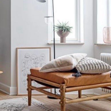 SUPER FLOT OG VELHOLDT LÆDER PUF /SKAMMEL I LÆDER . TUNGE CHROM BEN .