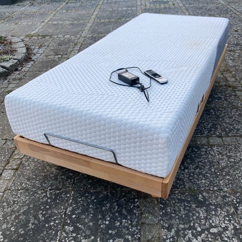 Plejeseng i lyst træ med el-motorer som styrer elevationsbunden og det lodrette løft. Sengens bund er delt i 4 sektioner hvilket gør, at ligge- og siddepositionerne selv kan vælges. Sengen har el-styret motor, så du ved hjælp af en enkel fjernbetjening nemt kan bestemme sengens indstilling.