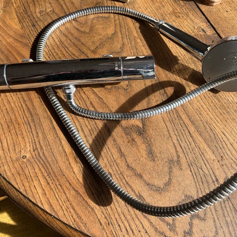 Hansgrohe Ecostat S termostatarmatur i krom. Modelnummer 13236000. Vægmonteret termostat til bruser, leveres med tilhørende dele som vist på billederne. Fremstillet i Tyskland og udført i krom-overflade. Egnet til installation i bruseområde, hvor der ønskes præcis temperaturregulering.
