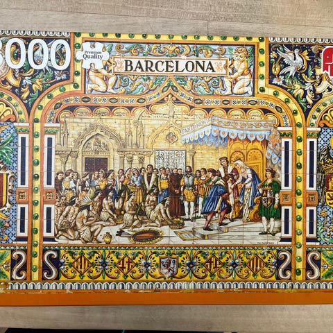 Jumbo puslespil på 1000 brikker med forskellige motiver af byer og landskaber. Æskerne viser blandt andet historiske bygninger, bymiljøer og naturmotiver. Velegnet til puslespilsentusiaster, der ønsker motiver med arkitektur og natur i mellemstor sværhedsgrad på grund af brikkernes antal. 20 kr pr stk. Samlet 125 kr. sender.