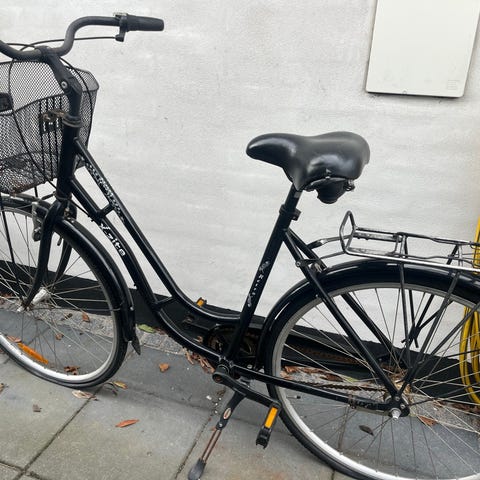 Det skal ny slange på, måske et dæk og en lås skal på . Der er hul i sadl