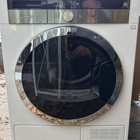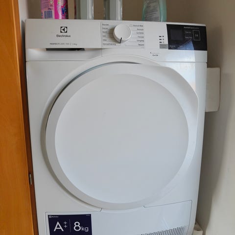 Electrolux kondenstørretumbler i hvid. Frontbetjent model med rund luge og digitalt display. Billig i drift da den er med varmepumpe. Tørretumbleren er en kondensmodel, som opsamler fugten i en beholder i stedet for at lede den direkte ud. Egnet til indbygning i bryggers eller vaskerum med almindelig stikkontakt. Maskinen har programvælger på drejeknap og knapper til indstillinger på fronten. Yderkabinet i hvidt stål med tilslutningskabel bagpå.
