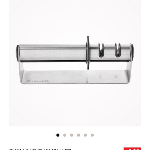 TwinSharp, Zwilling, Den smarte og yderst brugervenlige TwinSharp knivskærper fra Zwilling er forudindstillet på ca. 30 graders vinkel, og er derfor egnet til enhver europæisk køkkenkniv uden bølgeskær. Om du er højre- eller venstrehåndet har ingen betydning - knivskærperen fra Zwilling er til begge dele. Ved hjælp af de keramiske hjul slibes dine knive på en simpel og yderst effektiv og sikker måde.