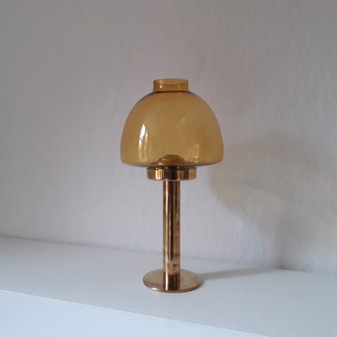 Smuk patineret forgyldt messing “Claudia” stage med røgfarvet fladskærm ~ designet af Hans-Agne Jakobsson (model L102/32) i 1960’erne for Markaryd, Sverige