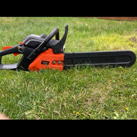 Oregon benzinkædesav i grøn farve. Savens sværd er monteret med Oregon kæde og sværd. Velegnet til generelt skov- og havearbejde, hvor der er behov for en benzindrevet kædesav. Flere betjeningsknapper og sikkerhedshåndtag er placeret ved grebet for kontrol under brug.