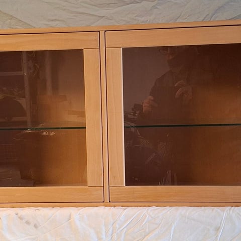 Vitrineskab fra trævarefabrikkens kubik serie. Næsten som ny. Et lille afslag ved front på kanten. Glaslåge medfølger. Låge og beslag kan afmonteres.