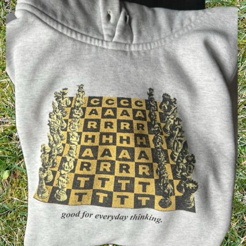 Jakken er grå med Carhartt-logo på fronten.
