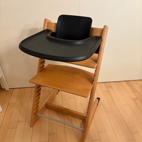 Sælger vores flotte Tripp Trapp fra 2019 i farven Lys eg. Den er brugt til ét barn og står i rigtig pæn stand med kun små, almindelige brugsspor (se billeder).