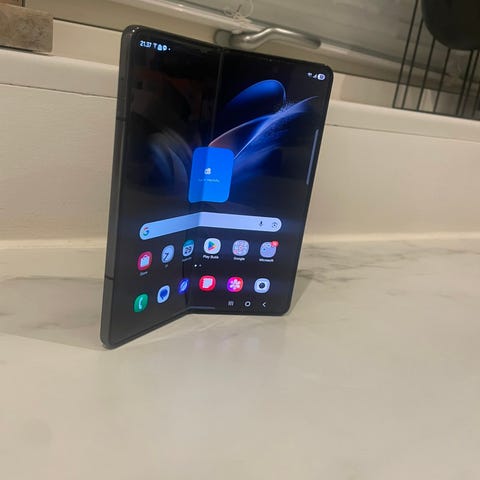 Samsung Galaxy Fold 4 mobiltelefon med 256 GB intern hukommelse. Foldbar skærm.