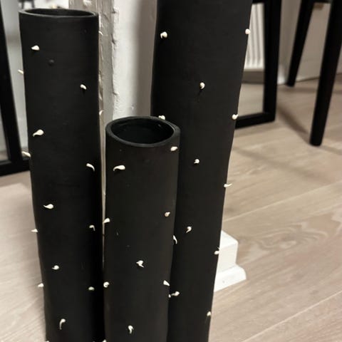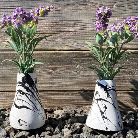 Cement vaser i farver hvid med sort abstrakt stænk mønster