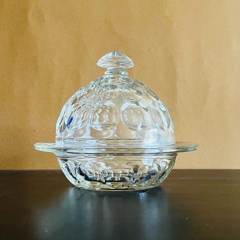 Vintage smør beholder i rødt glas