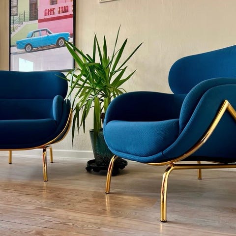 Perfekte som loungestole, i sommerhus eller til retro/boheme indretning.