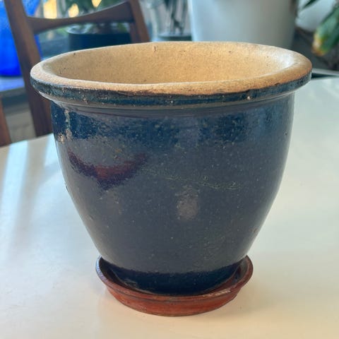 retro urtepotte, keramik potte, sort urtepotte, vintage potte, skjuler, blomsterpotte, plantekrukke, retro keramik, dansk design stil, boligindretning, interiør, dekorativ potte, stor urtepotte, unik keramik, 70er stil