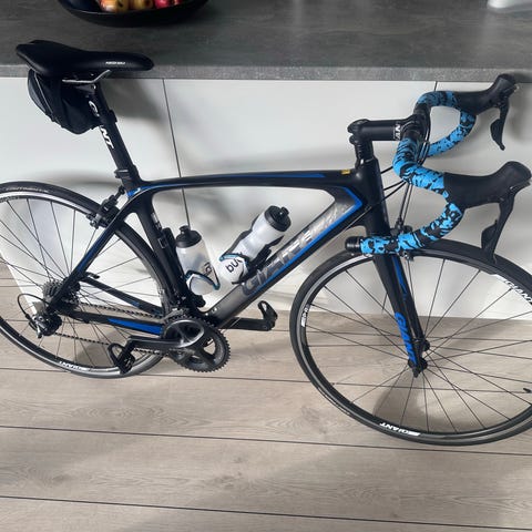 Cyklen er med Sram Red gear- og bremseserie. Cyklen har stået indendørs i de sidste 5 år, hvor den kun har kørt ca 500km, pga dårlig ryg! Har kørt flere kilometer før mit ejerskab.