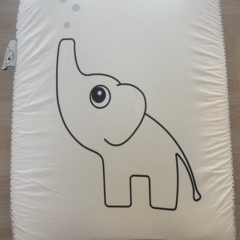 Sælges da vi købte to til vores tvillinger, men aldrig fik brug for at skifte dem begge på puslebordet samtidig. Den er brugt utrolig lidt (maksimalt et par gange), men har stået fremme på puslebordet i ca. 10 måneder.