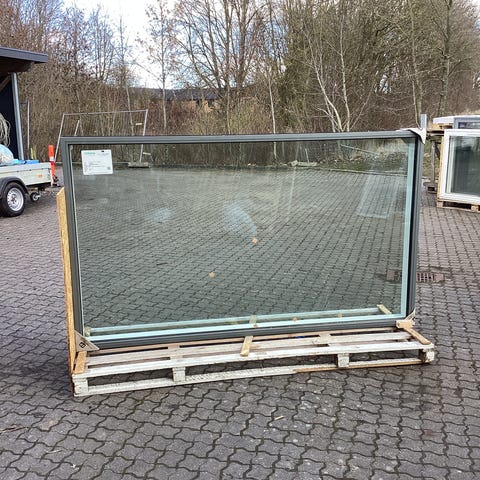 Stor træ/alu fastkarms vindue 239*139 3 lags rude grå udvendig hvid indvendig
