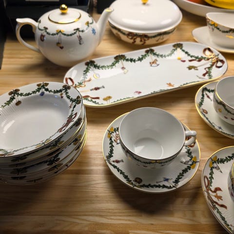 3 hele sæt og en enkelt tallerken som vist på billedet.