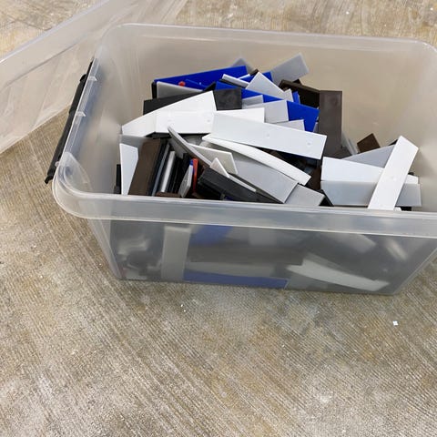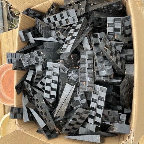 Plastkiler i forskellige farver og størrelser. Kilerne har rektangulær form med flere firkantede udskæringer. Velegnet som afstandsstykker eller underlag ved for eksempel montage- eller justeringsopgaver, hvor der er behov for små niveauforskelle eller stabilisering. Leveres samlet i en plastkasse som vist på billederne.