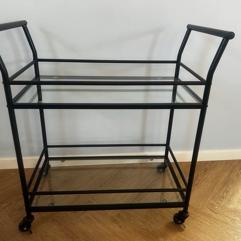 Serveringsbord / rullebord / barvogn på hjul i forkromet stål og sort glas