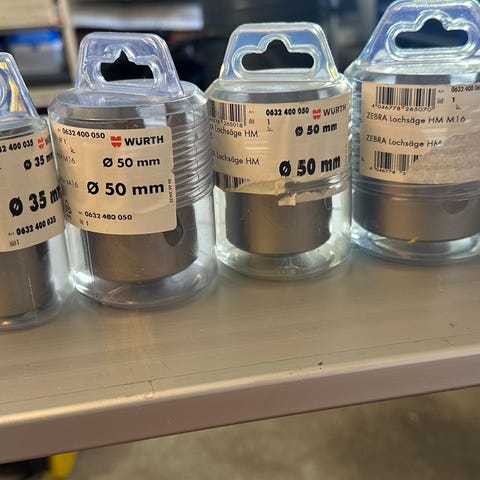Med 10 hulbor: 22mm- 27mm- 32mm- 35mm- 40mm- 57mm- 65mm- 68mm- 73mm- 79mm
