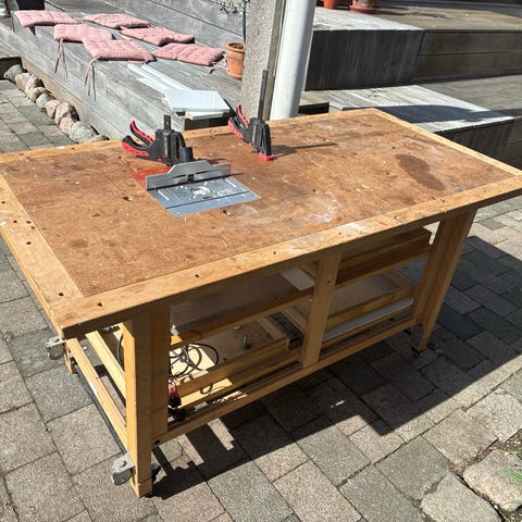 Alt fungerer præcis som det skal. Bordet er brugt, men velholdt. Liften kører smooth, og Bosch-maskinen har masser af kræfter til de fleste opgaver.